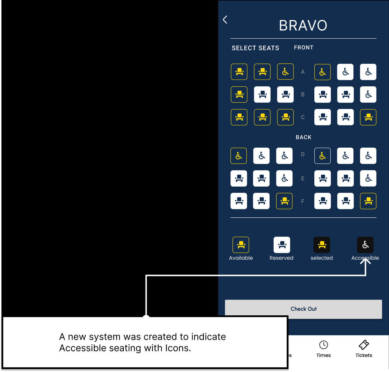 The ticketing system was enhanced by adding a real-time display of available seats, allowing users to make more informed decisions when selecting their tickets. This enabled all users to navigate the ticket purchasing process with greater ease and confidence.