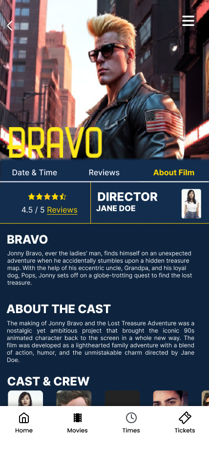 The dedicated movie synopses & reviews section addresses the issue by applying the Gestalt Principle of Completeness( By adding reviews and detailed synopses, the app gives users more comprehensive movie details, filling in the gaps left by a short bio alone.