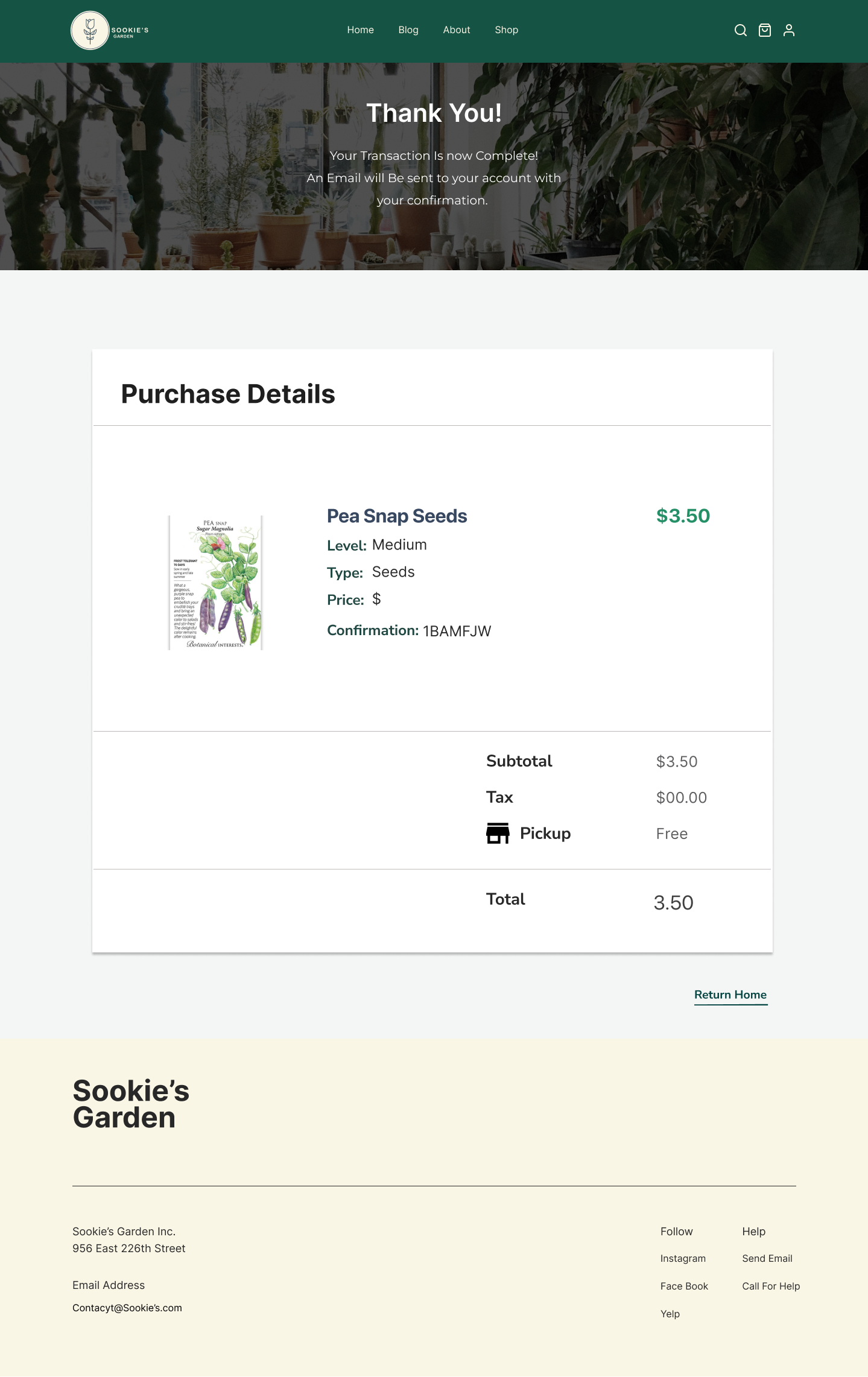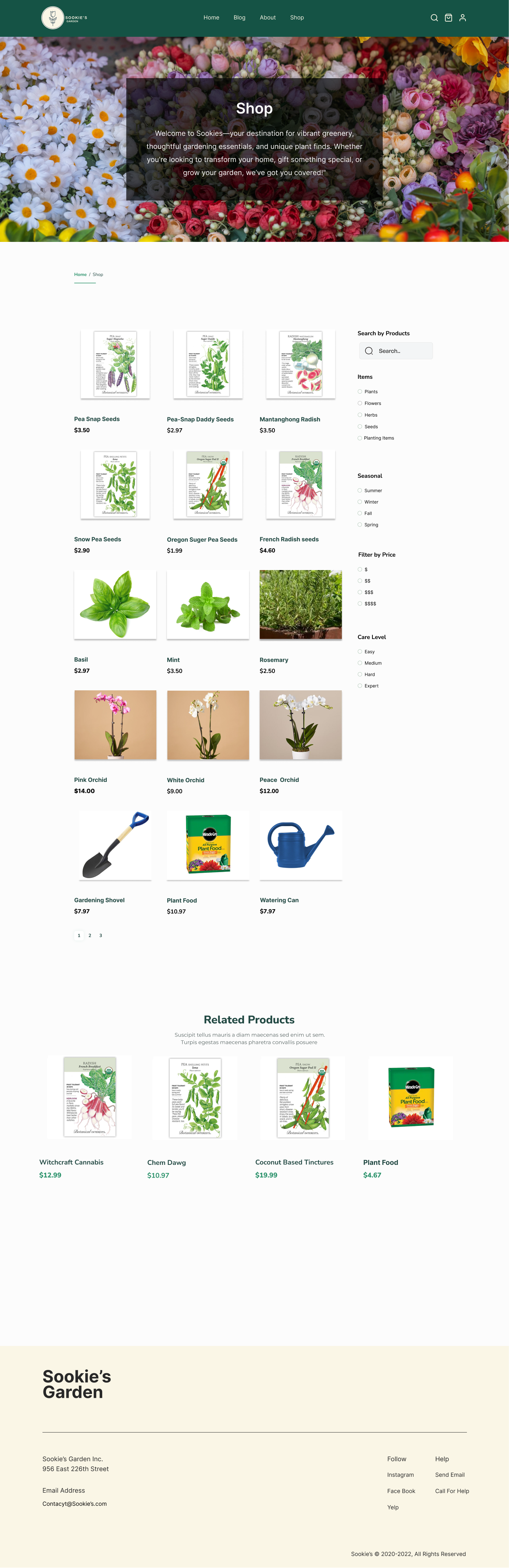 The redesign of Sookie’s Garden’s website aimed to transform a thriving local nursery into a dynamic online presence while staying true to its community-focused ethos. By embracing earthy tones and intuitive navigation, the new design mirrors the natural beauty and simplicity of the brand. Key features such as consolidated navigation, enhanced product categorization, and an optimized checkout process—including an in-store pickup option—address customer preferences for convenience and transparency.