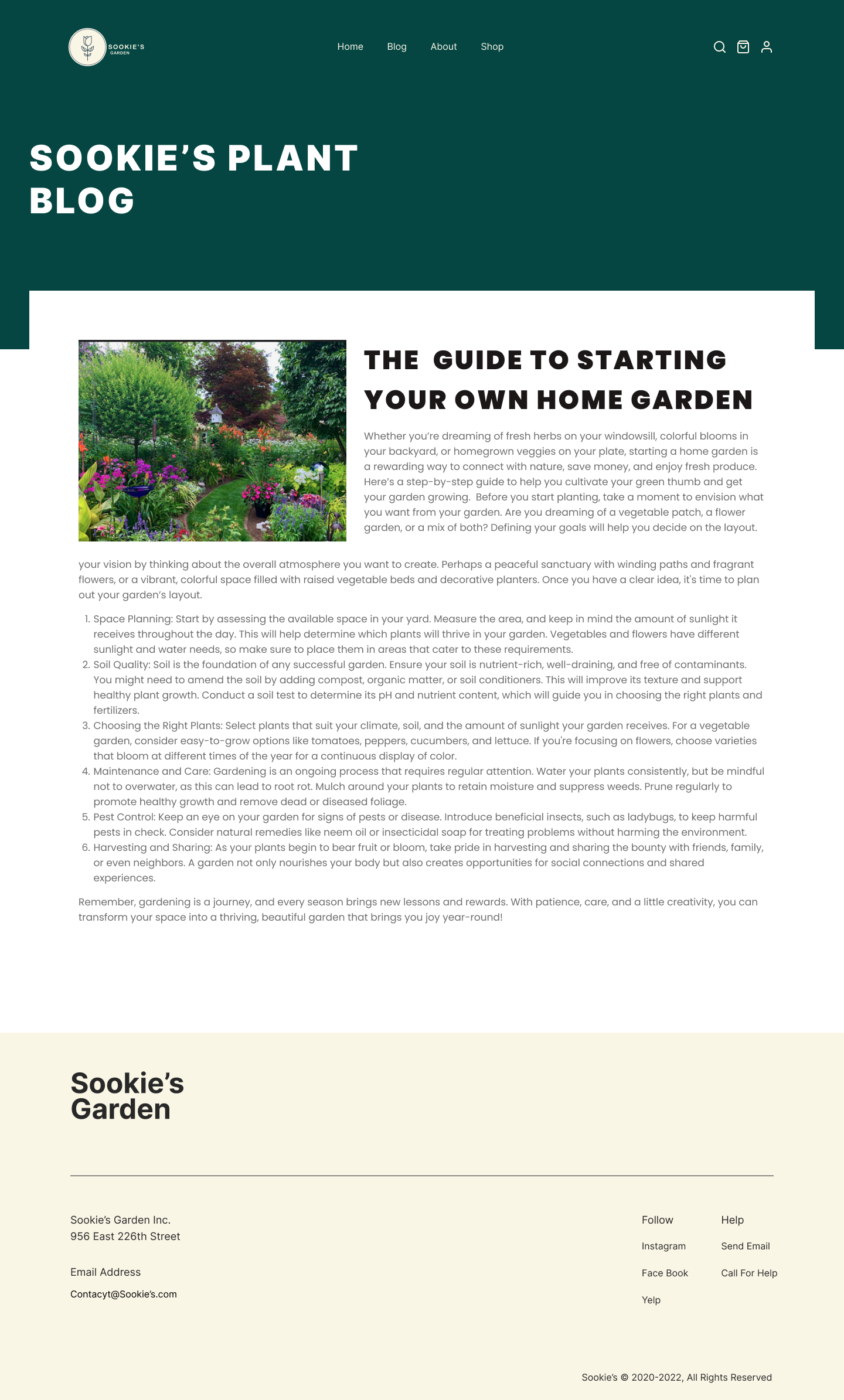 My task focused on developing three core pages that aligned with the vision of sookie's garden: